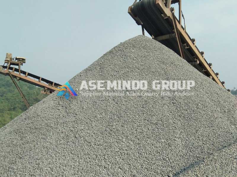 Proses ini berawal dengan menyiapkan batu yang berukuran besar (batu yang belum terpecah-pecah) Batu masuk ke dalam mesin pemecah batu yang pertama yang kemudian dikirim ke mesin crusher pemecah impact dengan 5 penyaringan yang masing-masing tahapan mengelurkan produk berupa :